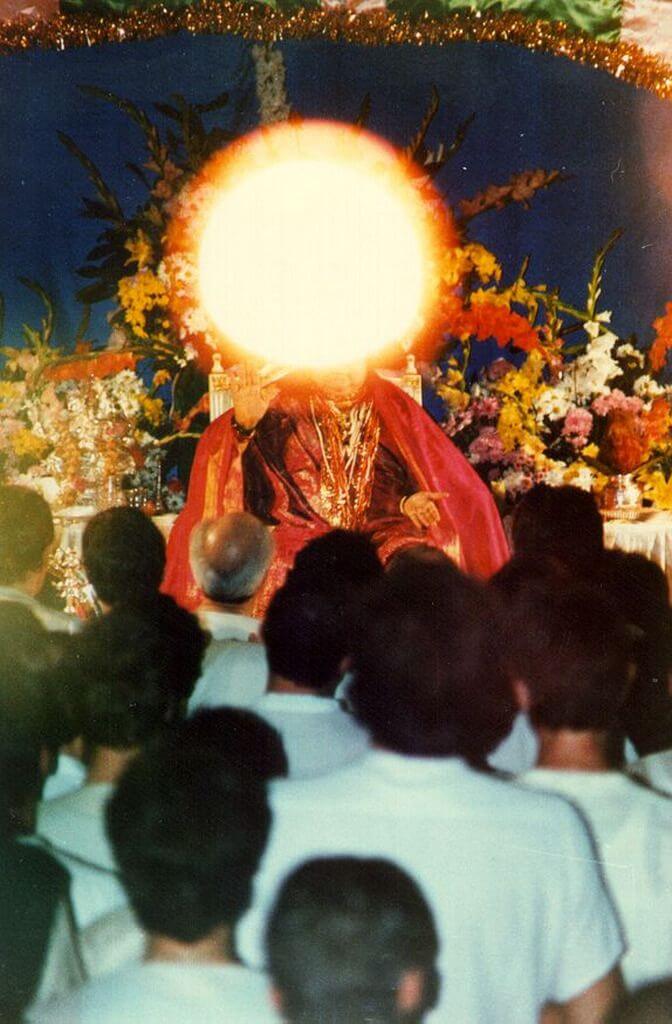 In 1972 H. H. Shri Mataji Nirmala Devi sailed to the US and warned against false gurus. Later She publicly fearlessly criticised the false gurus in Her various lectures saving mankind from the trap of kugurus who were taking advantage of the innocent seekers of truth. In 1974, She moved to London with her husband and worked with seven London hippies who became the first Western Sahaja Yogis. In 1979 H. H. Shri Mataji Nirmala Devi declared Herself to be the complete incarnation of the AdiShakti (Primordial Power), The Holy Spirit, Maitreya or Mahdi to her devotees as prophesied by earlier incarnations of various religion. She continued to shower Her motherly love through Her compassionate personality and blessed the seekers with their Self-Realisation by awakening their Kundalini.